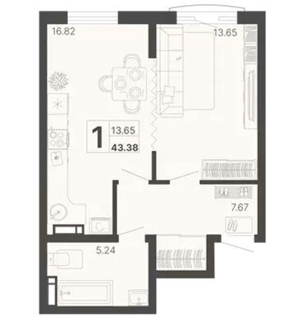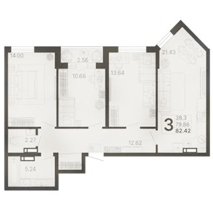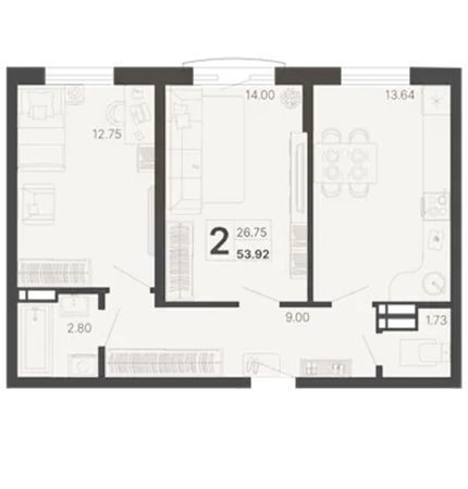 От 26 м² (однокомнатные) до 89 м² (трехкомнатные).